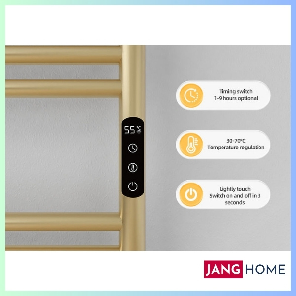- Nhiệt độ giàn sấy khăn nhà tắm tự động được đặt thành 55 độ, người dùng không cần điều chỉnh nhiệt độ, máy sẽ tự động ngắt trong vòng 4 giờ.